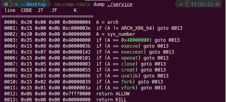除了pie全开,同时开了沙箱,禁用execve函数,拖入ida中分析。