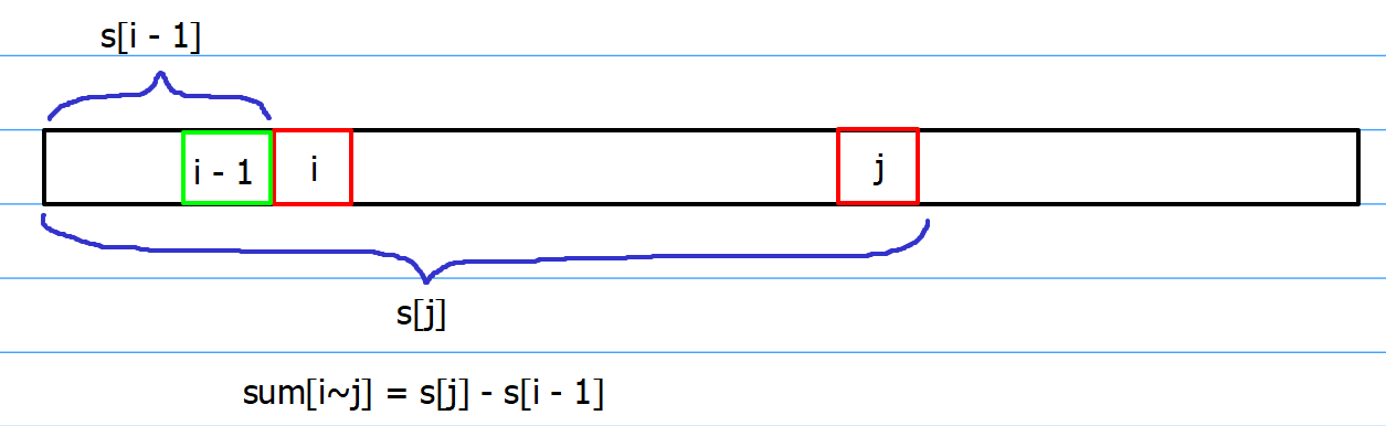 1 #include <iostream> 2 using namespace std; 3 const int N = 100009; 4 int num[N]; 5 int main() 6 { 7 int n,q; 8 cin >> n >> q; 9 for(int i = 1;i <= n;++i) 10 { 11 int a; 12 cin >> a; 13 num[i] = a + num[i-1]; 14 } 15 while(q--) 16 { 17 int l,r; 18 cin >> l >> r; 19 cout << num[r] - num[l - 1] << endl; 20 } 21 return 0; 22 }