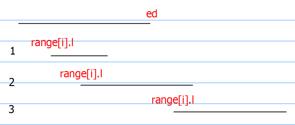 ①range[i].l < ed => 直接合并,且ed不变