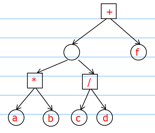 对于一个中缀表达式,优先级高的应当被先算,低的则后算,那么体现在树上就是运算符优先级高的表达式树应当处于越下端。