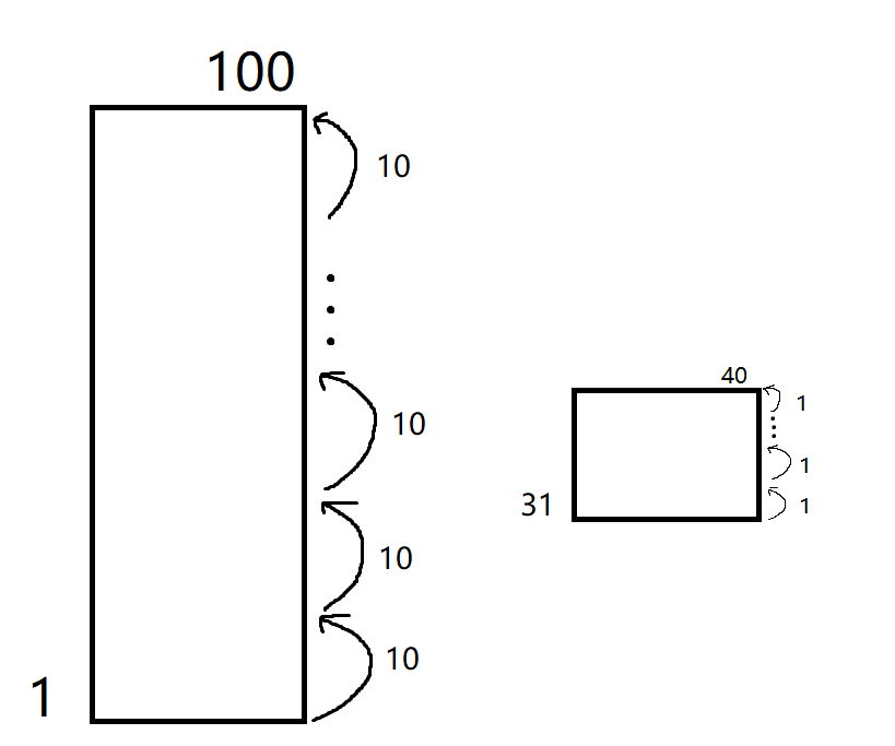 一个比较直观的想法就是首先每 10 层进行一次尝试,当遇到某一个 10 的倍数的楼层的鸡蛋破碎了,再从上一个 10 的倍数的楼层开始往上尝试,直到找到楼层 f 为止,大致思想如下: