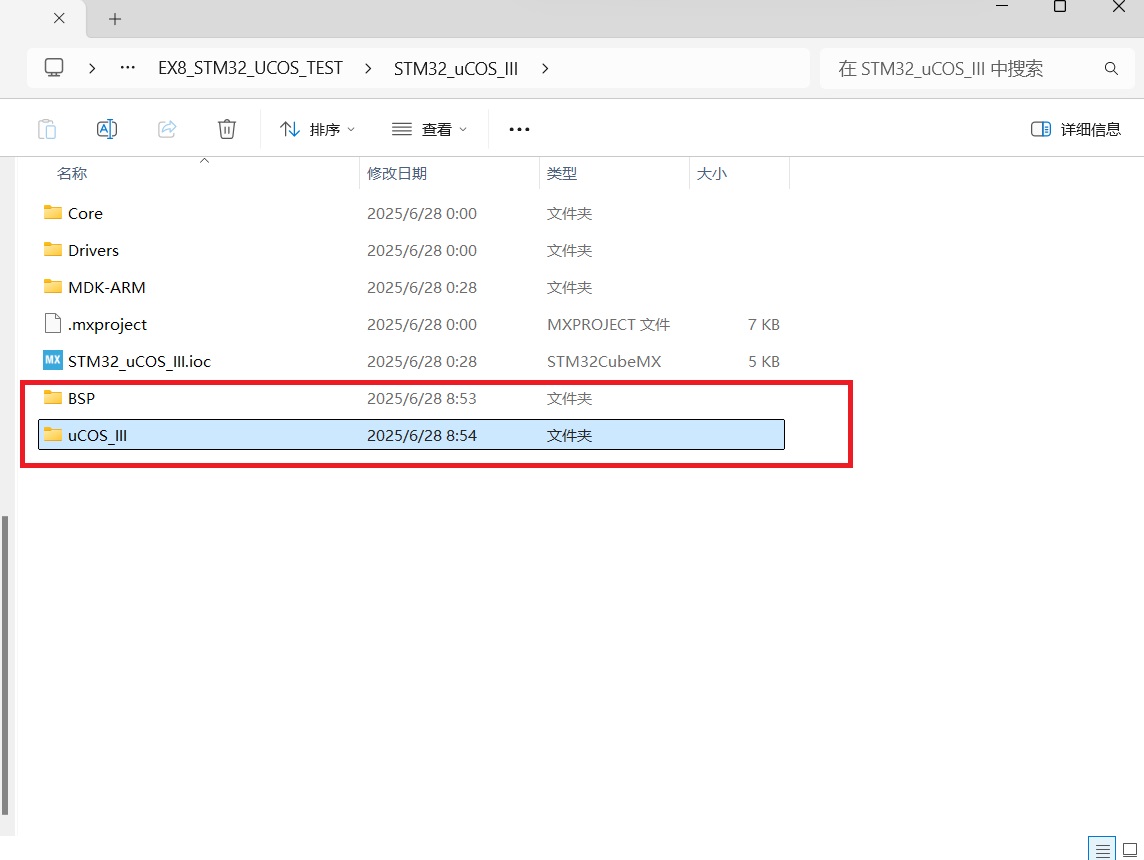 1.在工程的文件夹下添加新的文件夹BSP、uCOS_III。