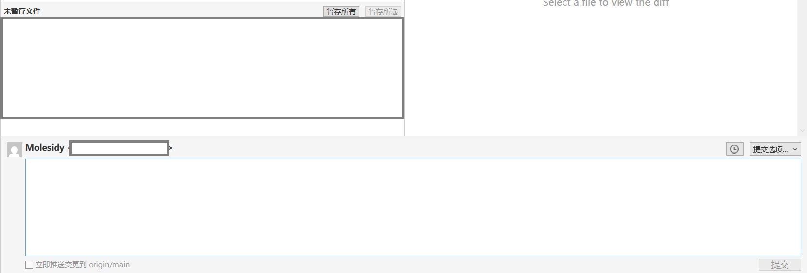 5.选中、暂存,然后点击右下角的提交选项并勾选推送远程,完成提交到本地仓库和远程仓库的过程