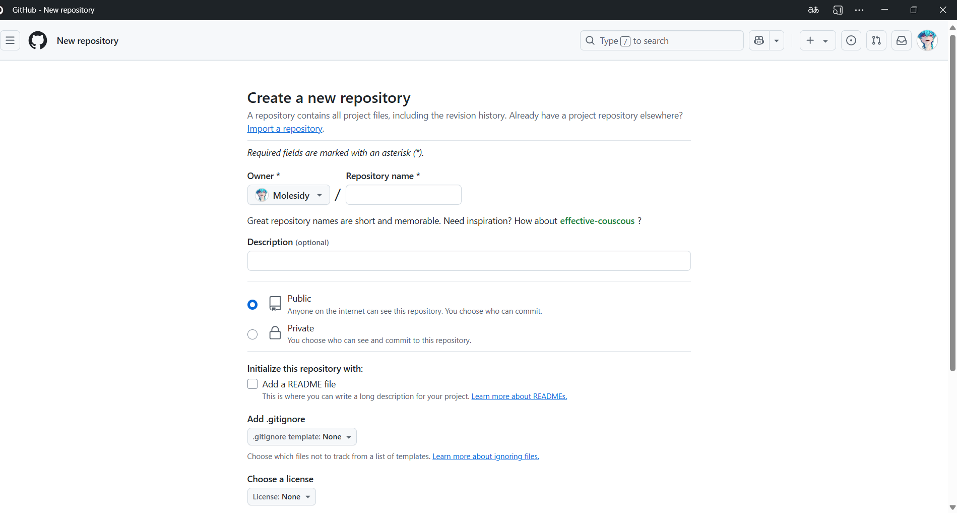 1.首先在GitHub上创建一个远程仓库