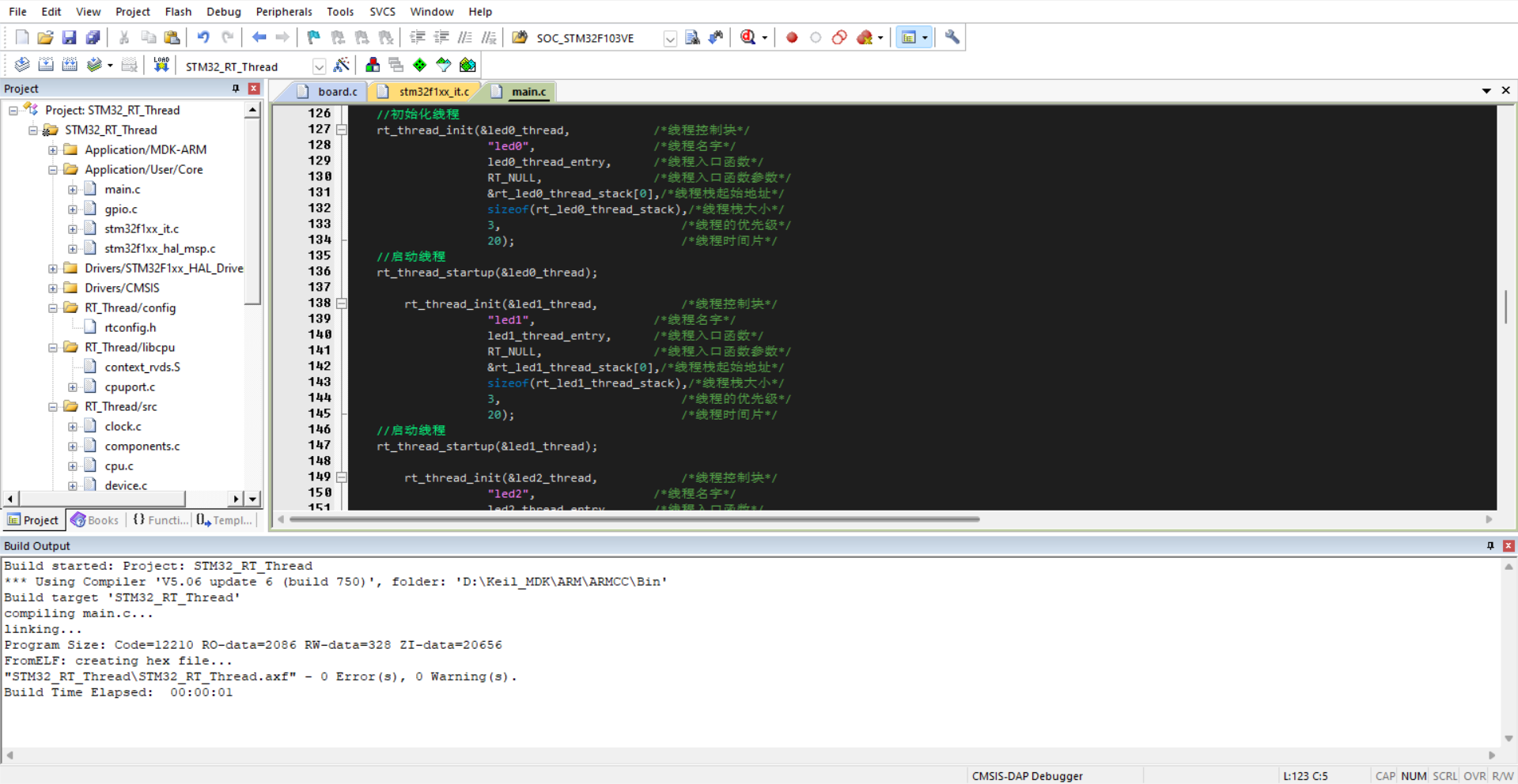 至此,纯手动移植完成,后续会讲如何使用KEIL自带源码包移植RT-Thread和RT-Thread Studio的使用。