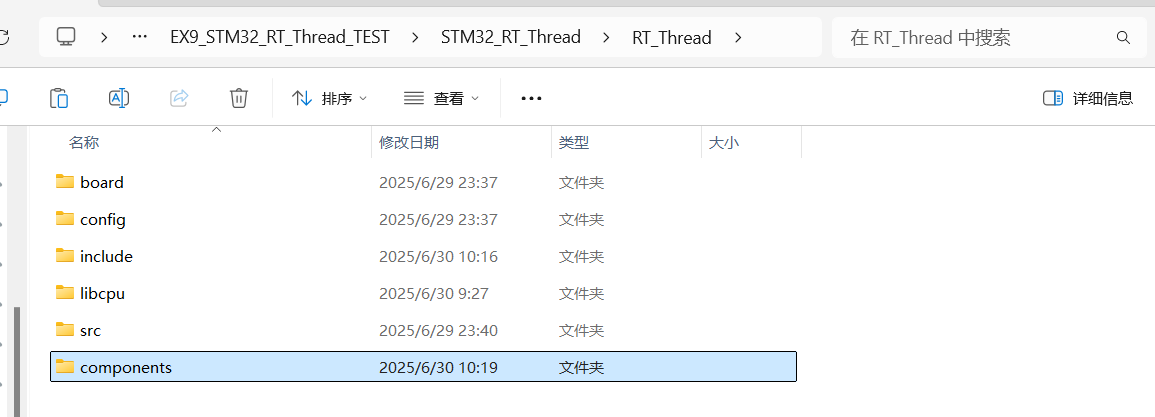 7.将\STM32_RT_Thread\rt-thread-3.1.5的components整个复制到\STM32_RT_Thread\RT_Thread下