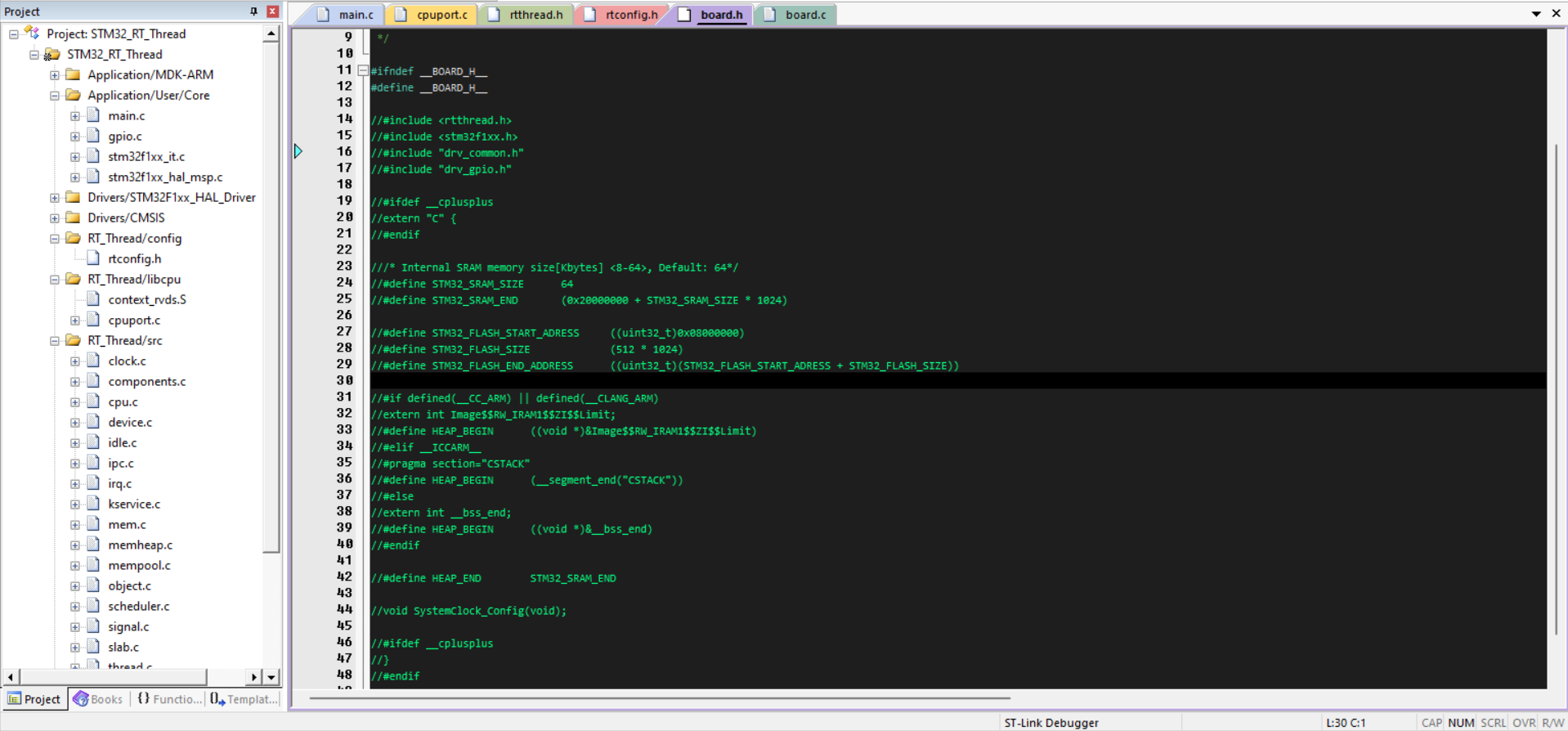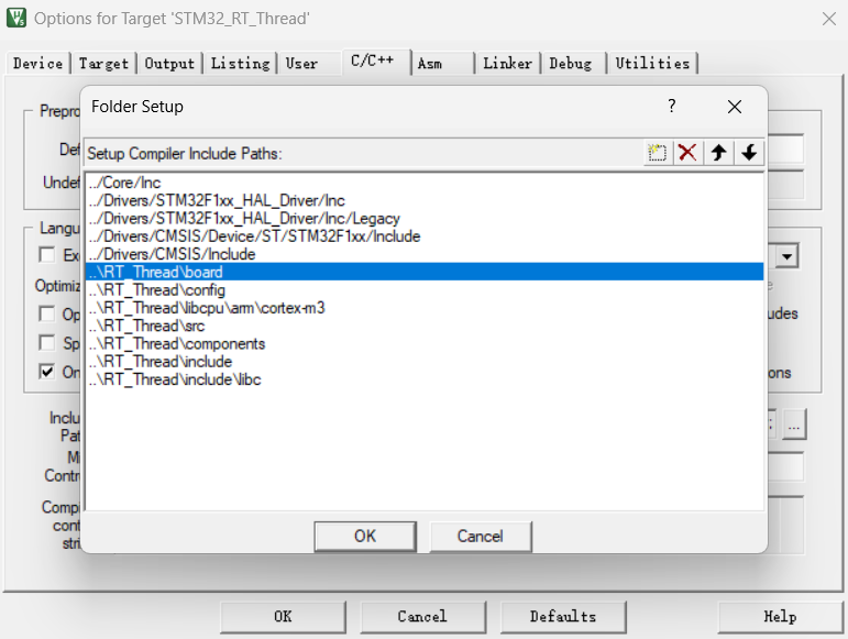 3.将\STM32_RT_Thread\rt-thread-3.1.5\bsp\stm32\stm32f103-fire-arbitrary\board下的board.c、board.h复制到RT_Thread下的文件夹board