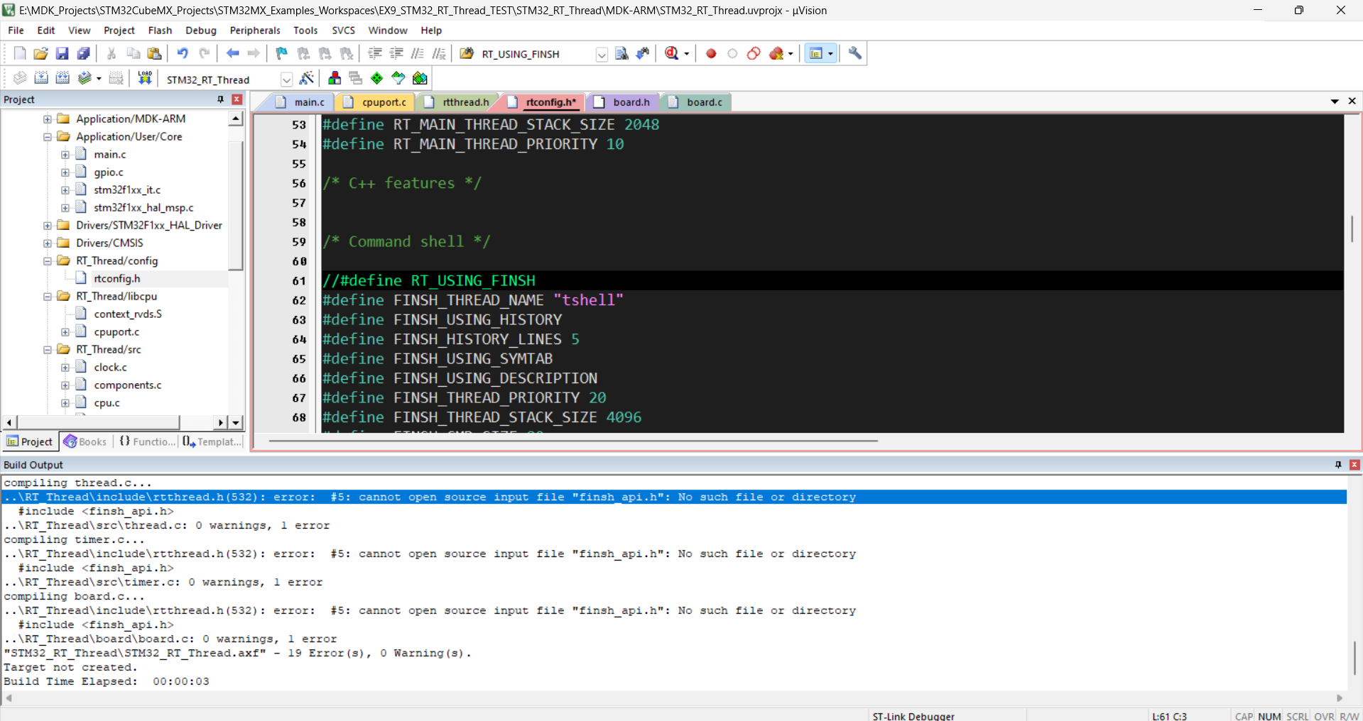 10.注释掉#define RT_USING_FINSH,因为暂时不会用到finsh组件