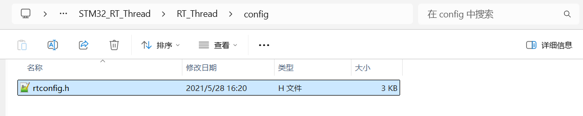 2.将\STM32_RT_Thread\rt-thread-3.1.5\bsp\stm32\stm32f103-fire-arbitrary下的rtconfig.h复制到RT_Thread下的文件夹config