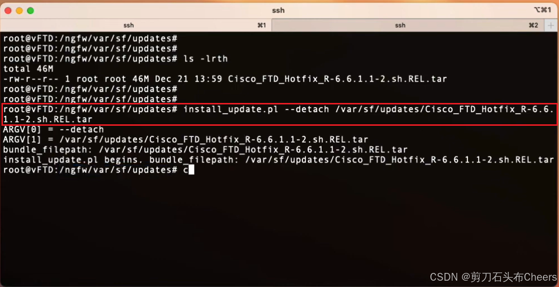 install_update.pl --detach /var/sf/updates/Cisco_FTD...REL.tar