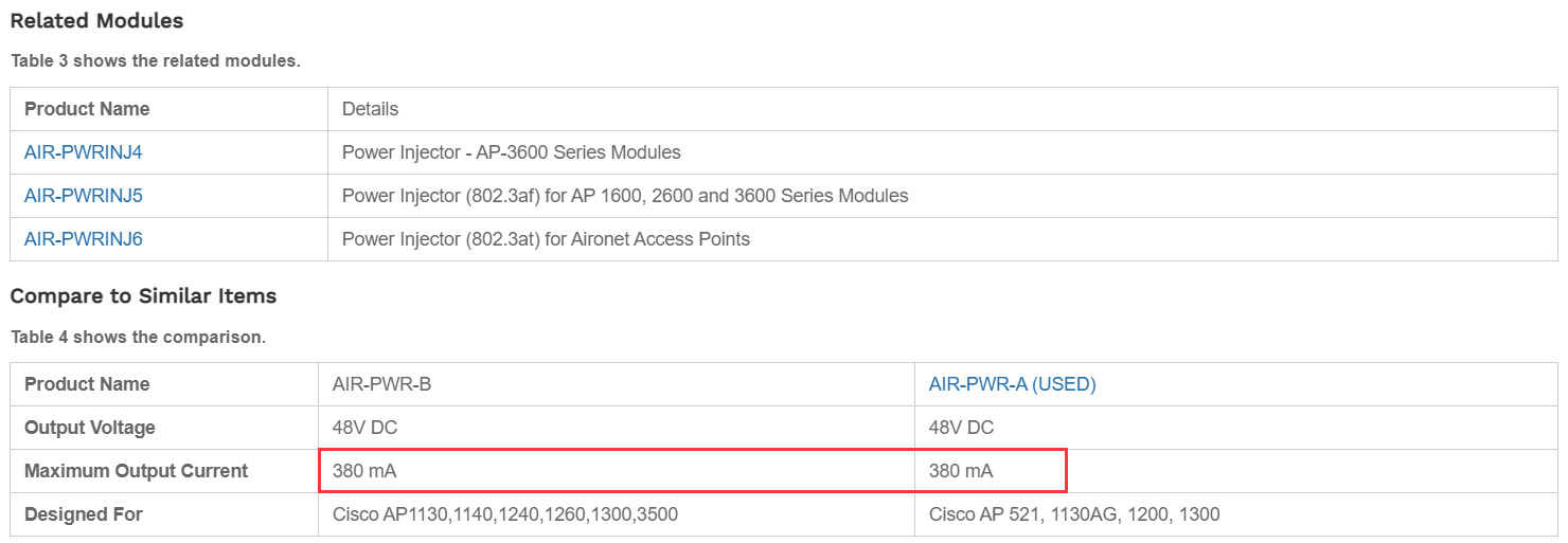 | 4800 | AIR-PWRINJ6= (full power) | AIR-PWR-50= (full power) |