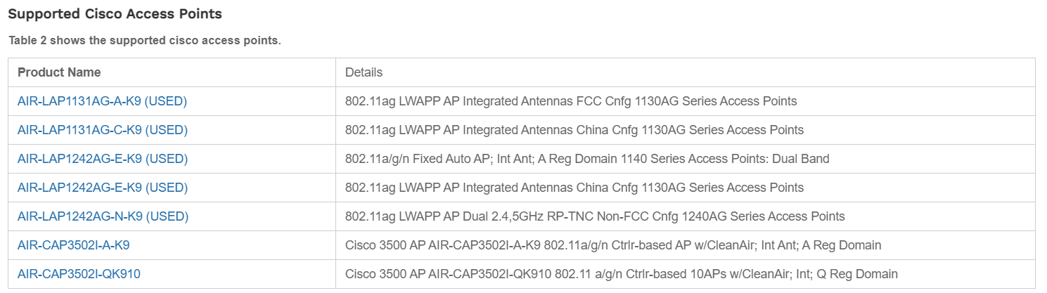 Table 2 lists all officially supported PoE injectors for latest Cisco AP models: