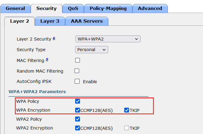 Conditions:WLAN is configured for WPA/TKIP and WPA2/AES. AP is an 1850/1830. Client is configured for TKIP not AES.