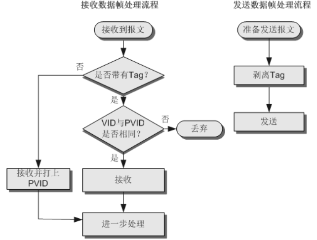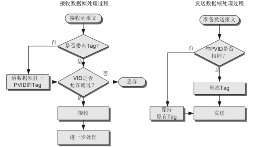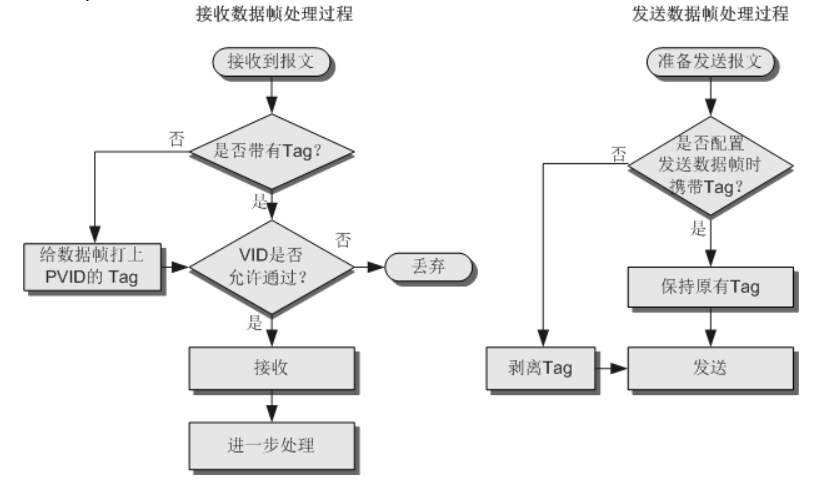 由上面各类接口添加或剥除VLAN标签的处理过程可见: