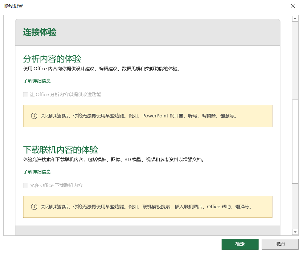 当然正确的途径是购买正版Office软件,然后进行激活,如果需要体验Office的相关功能,而同时需要避免该提醒的话,可以尝试如下路径,取消所有勾选内容: