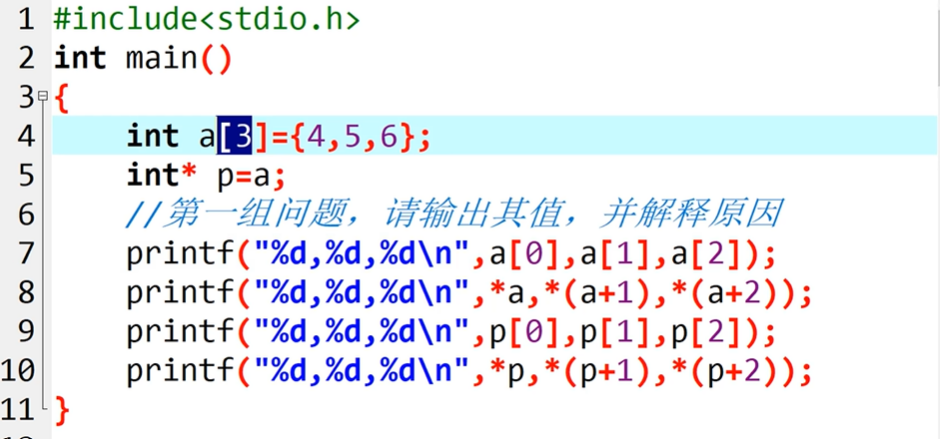 分析:*a=当前地址为首地址,即a[0]=4;