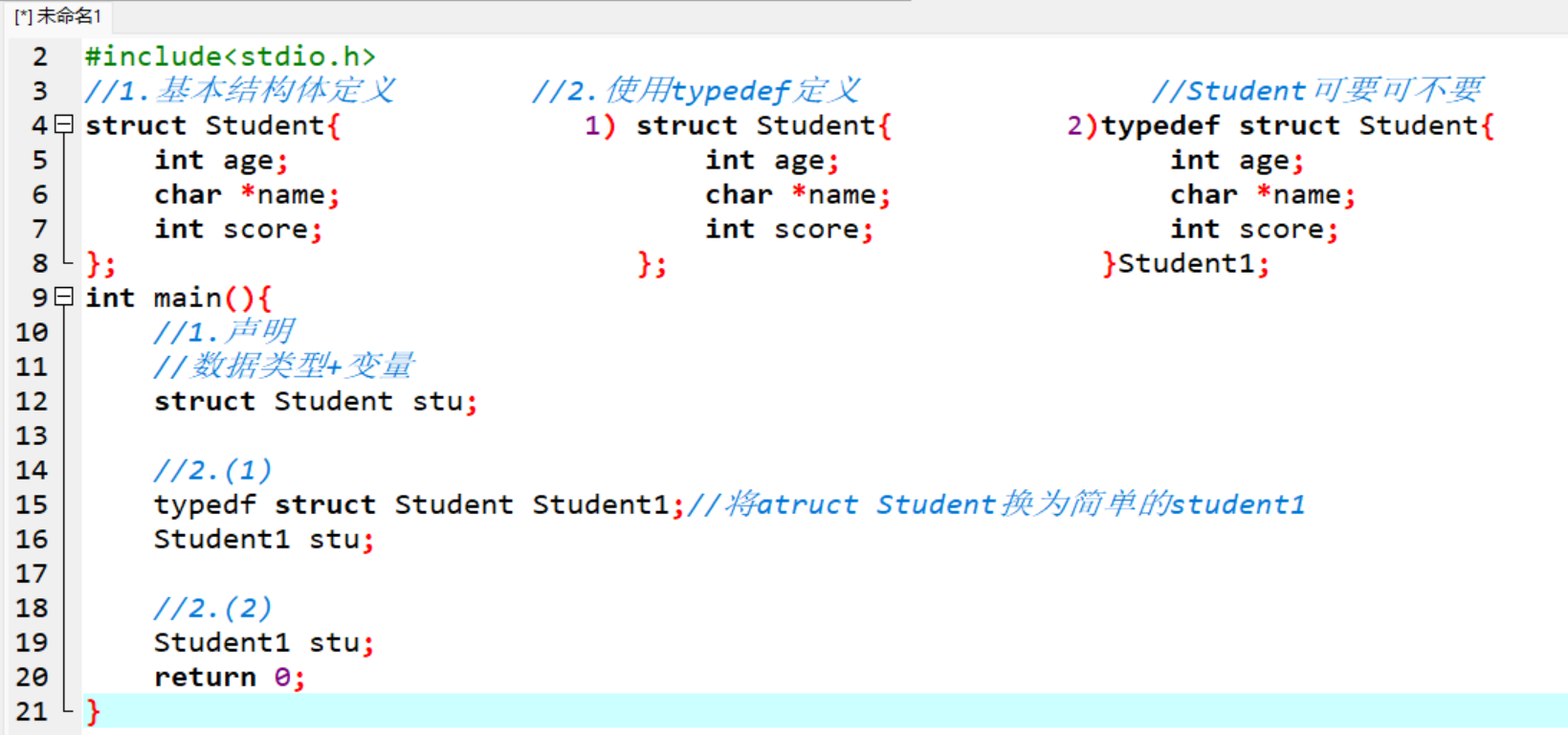 }Student1,Stu;(Student1与Stu同为结构体别名)