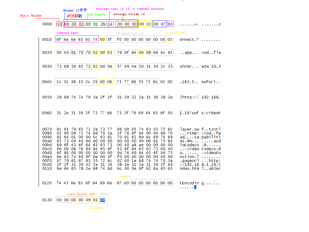 命令消息有如connect, createStream, publish, play, pause on the peer等函数,还有onstatus, result 等。