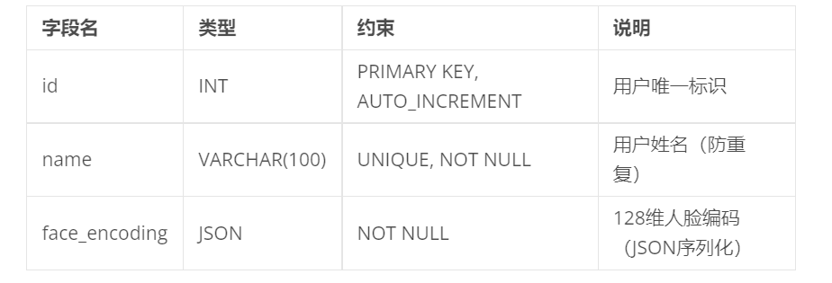 需要注意的是,由于系统的不同和数据库的环境,实际使用中需注意摄像头权限适配(Linux/Mac/Windows差异)及MySQL连接参数配置(代码中密码硬编码需改为环境变量读取)。