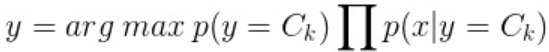 其中 x(i) 代表某特征, ck代表某类别,n为特征数。