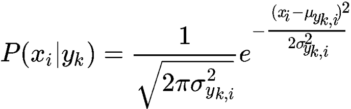 P(xi|yk):类别 yk中,第 i维特征,特征值为xi的概率。