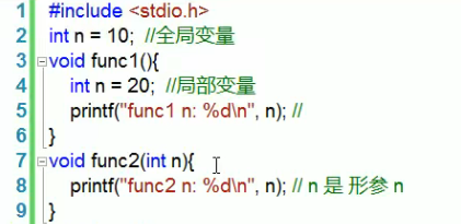 当形参(局部变量)和全局变量同名,会优先使用局部变量(编译器就近原则)