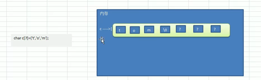 数组已经满了,没有空间放结束标志\0了(空间足够的时候系统会自动给你家\0),因此输出有可能是abc,也有可能是abc+一堆乱码,扩大数组即可解决
