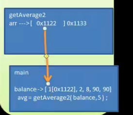 1 #include <stdio.h> 2 3 //函数声明 4 double getAverage(int *arr, int size); 5 double getAverage2(int *arr, int size); 6 7 int main(){ 8 int balance[5] = {1000,2,3,17,50}; //定义带有五个元素的int数组 9 double avg; 10 avg = getAverage(balance, 5); //传递以一个指向数组的指针作为参数 11 printf("Average value is: %f\n", avg); 12 return 0; 13 } 14 15 double getAverage(int *arr, int size){ //下标遍历 16 int i, sum = 0; 17 double avg; 18 for( i = 0; i < size; i++){ 19 sum += arr[i]; //数组下标运算 20 printf("\n arr存放的地址=%p", arr); //不改变arr的地址,只对下标进行修改 21 } 22 avg = (double)sum / size; 23 return avg; 24 } 25 26 double getAverage2(int *arr, int size){ //指针遍历 27 int i, sum = 0; 28 double avg; 29 for( i = 0; i < size; i++){ 30 sum += *arr; //地址运算 31 printf("\n arr存放的地址=%p", arr); 32 arr++; //指针的自增运算,会对arr存放的地址做修改 33 //arr[0] = arr + 0 34 //arr[1] = arr + 1个int的字节(4) 35 //arr[2] = arr + 2个int的字节(8) 36 } 37 avg = (double)sum / size; 38 return avg; 39 }