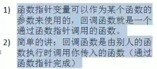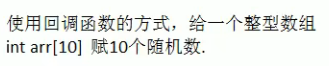 1 #include <stdio.h> 2 #include <stdlib.h> 3 4 //回调函数 5 //int (*f)(void),f是一个函数指针,它可以接收的函数是返回int,没有形参的参数 6 //f在这被initArray调用,充当了回调函数的角色 7 void initArray(int *array, int arraySize, int (*f)(void)){ 8 int i; 9 for(i = 0; i < arraySize; i++){ 10 array[i] = f(); //通过函数指针调用getNextRandomValue函数,(*f)()=f() 11 } 12 } 13 14 //获取随机值 15 int getNextRandomValue(void){ 16 return rand(); //rand系统函数,会返回一个随机整数 17 } 18 19 int main(){ 20 int myarray[10], i; //定义一个数组和int 21 //说明: 22 //1.调用initArray函数 23 //2.传入了一个函数名getNextRandomValue(地址),需要使用函数指针来接收 24 initArray(myarray, 10, getNextRandomValue); 25 for ( i = 0; i < 10; i++){ 26 printf("%d\n", myarray[i]); 27 } 28 printf("\n"); 29 return 0; 30 }