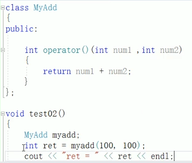 1 #include <iostream> 2 3 using namespace std; 4 5 class MyPrint{ 6 public: 7 //重载函数调用运算符 8 void operator()(string text){ //伪函数,采用重载函数调用运算符实现 9 cout << text << endl; 10 } 11 }; 12 13 void MyPrint02(string test){ //真函数 14 cout << test << endl; 15 } 16 17 void test01(){ 18 MyPrint p; 19 p("hello"); //伪函数 20 MyPrint02("hi"); //真函数 21 } 22 23 int main(){ 24 test01(); 25 system("pause"); 26 return 0; 27 }