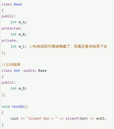 说明子类会完全继承父类中的非静态成员属性,父类的私有成员属性给编译器隐藏了,无法访问,但是还是会被继承。。