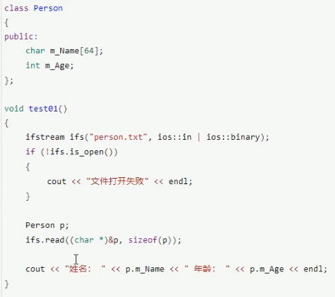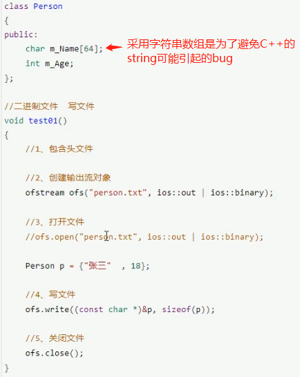 以二进制的方式对文件进行读写操作,打开的方式必须要指定为ios::binary