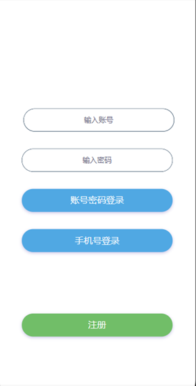 在登录界面有登录和注册按钮,点击登录按钮,在验证输入的账号密码合法且正确后,会跳转到首页。