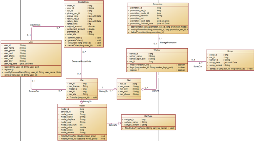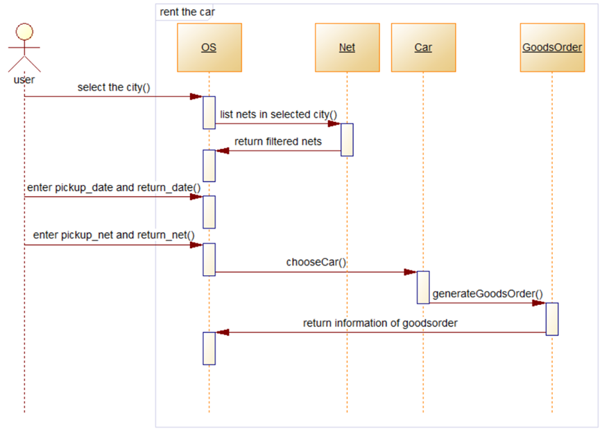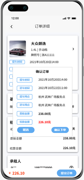 (6)用户在租车时系统根据车型、预计租车时长生成订单,用户可以根据订单情况选择是否继续租车,这一条功能即为确认订单。