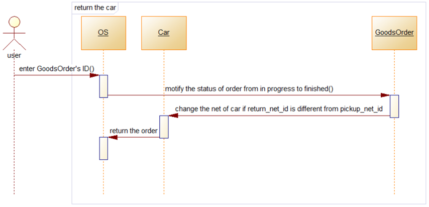 (4)用户在租车的时候可以选择“本店还车”或是“异店还车”,如果是“本店还车”,首页的还车网点自动保持与提车网点一致;如果是“异店还车”,用户在完成订单后系统自动将该车辆的所在网点改成还车网点,实现车辆调拨。