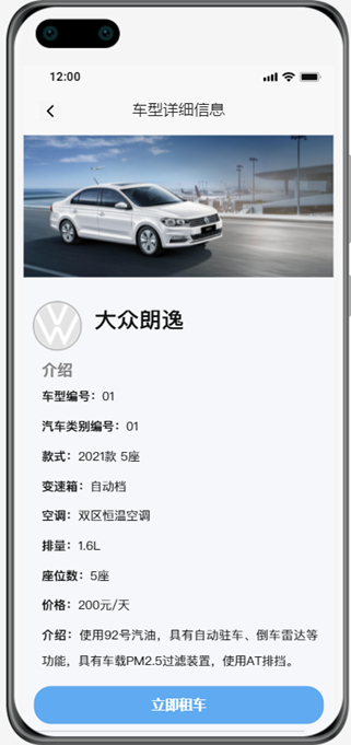 (4)用户可以根据车辆、网点等条件,查询到相关信息,包括所选车型的车辆品牌和型号、座位数等。