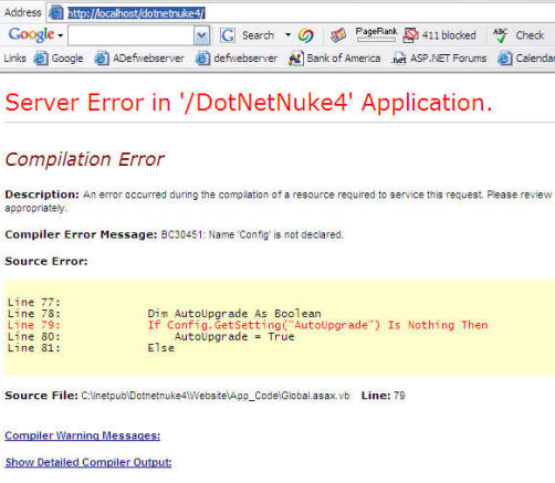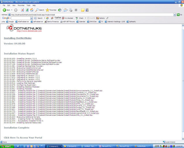 Ok I did not read the directions closely enough, but how many potential DotNetNukers are turned away because we move too fast and want everything to be easy? What can we do to make things more "idiot proof"? Perhaps the install .zip can have a install "tutorial" to augment the install documentation. The "tutorial" would be screen shots that walk you through a perfect installation. People hate to read but they will look at pictures.. |
