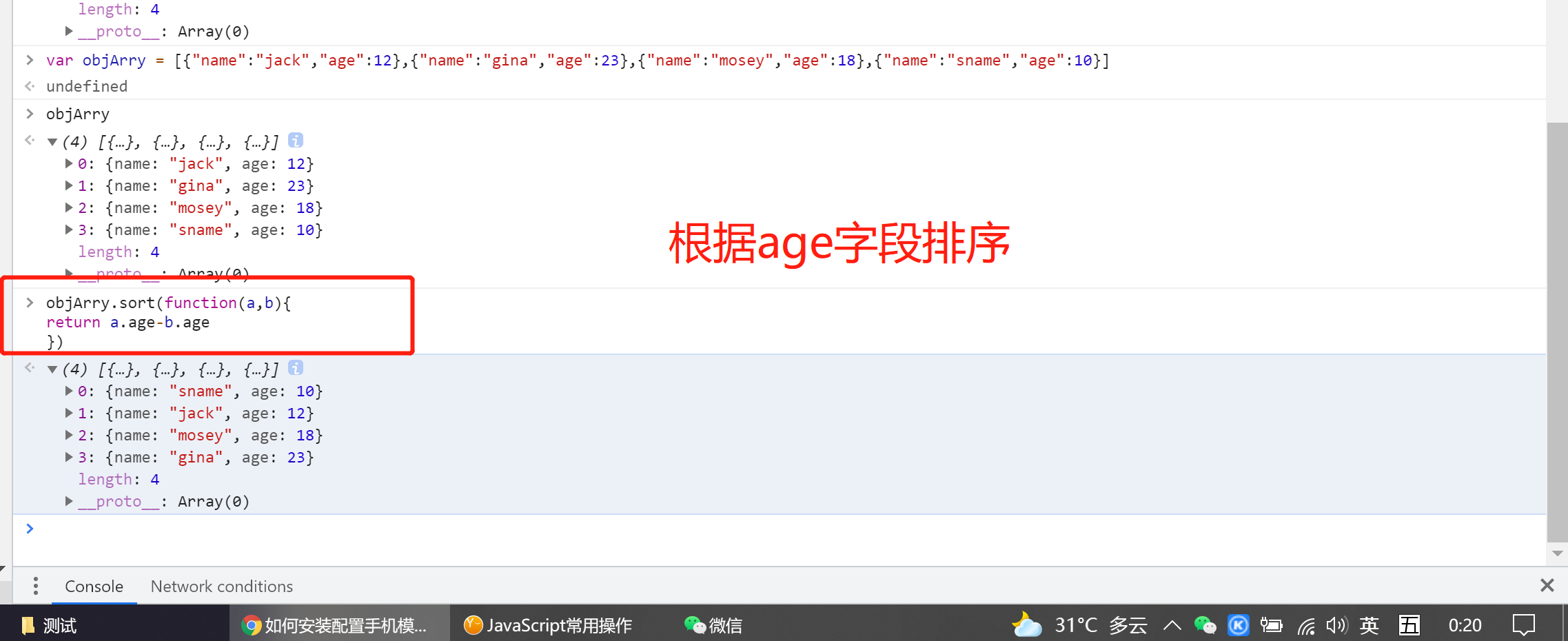 - 一般的数值类型的数组,直接 array.sort()就可以排序了,但是对象数组要根据对象中的某个字段来排序就要自己实现