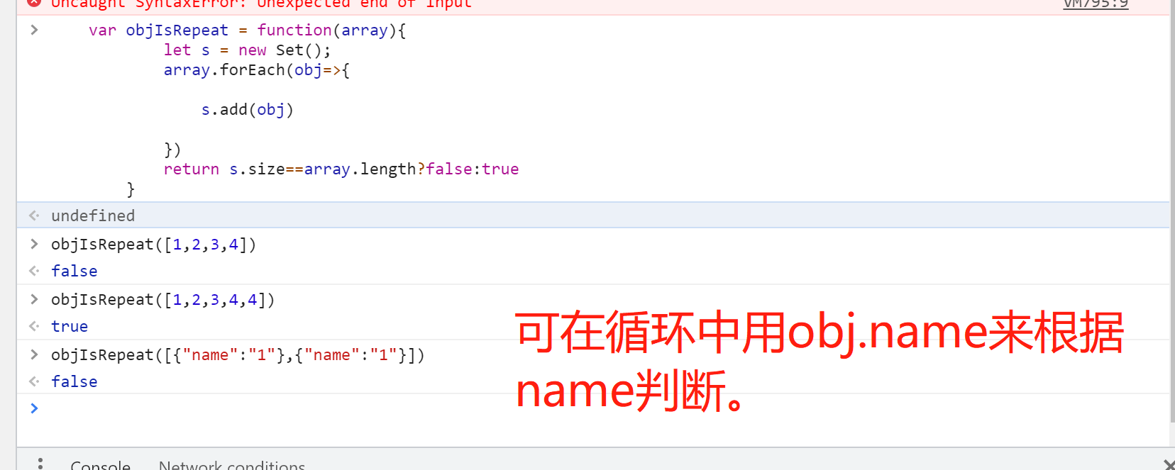 - 利用 Set 不可重复特性来判断,如果传入的 array 和 set 的大小一样。则没有相同元素。