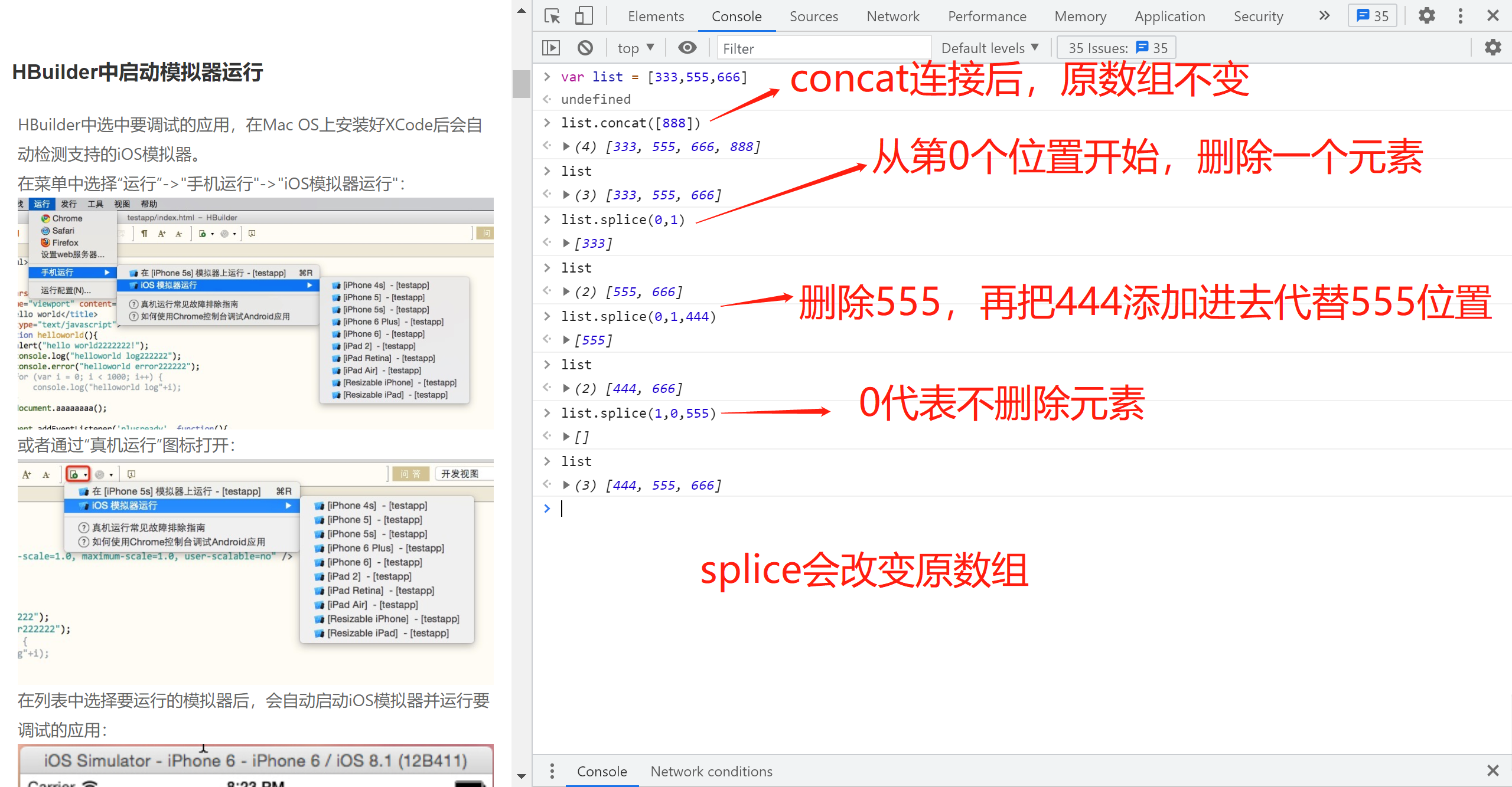 splice删除和替换数组元素,也可添加元素,splice会改变原数组