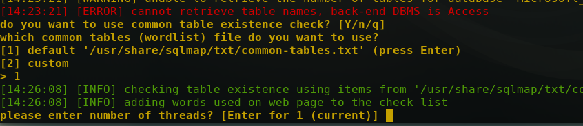 提示不能取回table,是否使用默认表做测试(当然了),y默认回车