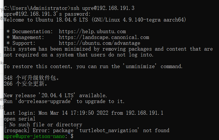 Win10 通过ssh 远程访问Nano的终端