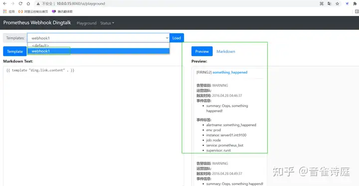 # 注意,这里的URL链接里的webhook1必须与上面config.yml里的webhook1名称相同否则无法发送报警