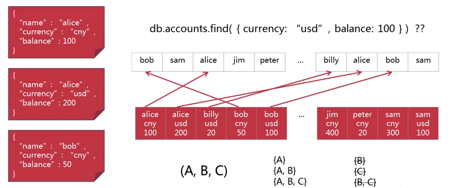 创建索引:db.<collection>.createIndex({currency: 1}),此时的索引映射情况如下: