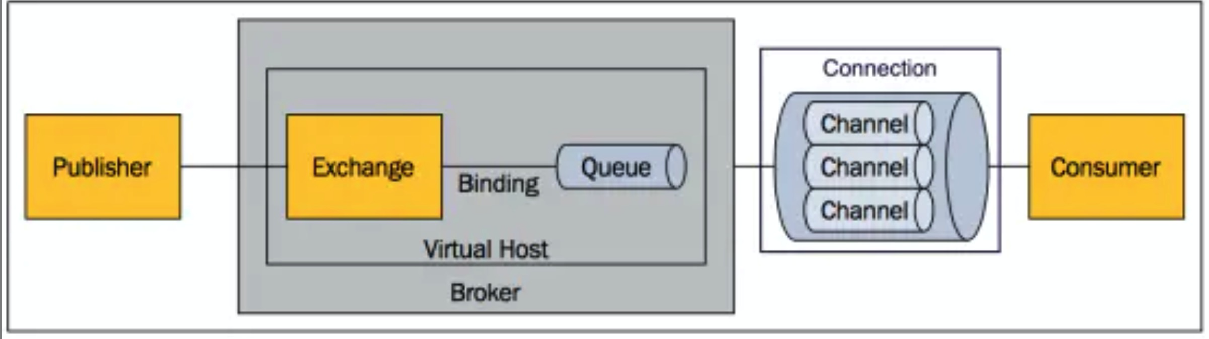 | Channel | 信道 | 多路复用连接中一条独立的双向数据流通道。AMQP命令通过信道,复用一条TCP连接进行通信 |