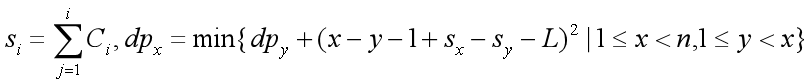 现有n个物品,第i个物品的长度为Ci。可以制造若干个容器,容器的数量和长度不限制,但是只能把连续若干个物品放入容器中。把物品区间[i,j]放入同一个容器中,长度为