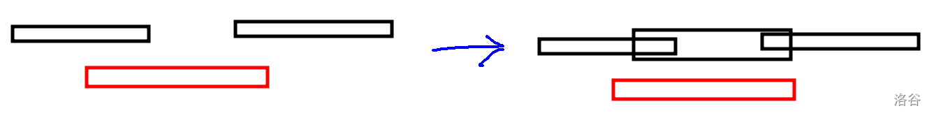 若干个区间并起来的结果为若干个互不相交的大区间。添加一个新的区间只会对其中一小部分有影响,其他的不变。有影响的大区间范围可以通过在上面所说的线段树上二分取得。具体来讲,通过线段树二分找到第一个为 的数。