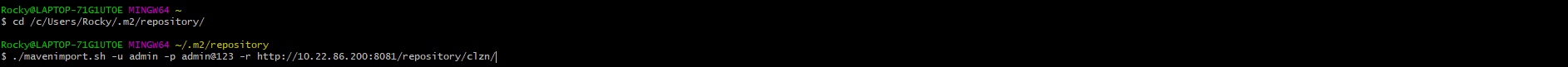 ./mavenimport.sh -u admin -p admin@123 -r http://10.22.86.200:8081/repository/clzn/