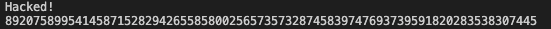 d=int('0x2dde7fbaed477f6d62838d55b0d0964868cf6efb2c282a5f13e6008ce7317a24cb57aec49ef0d738919f47cdcd9677cd52ac2293ec5938aa198f962678b5cd0da344453f521a69b2ac03647cdd8339f4e38cec452d54e60698833d67f9315c02ddaa4c79ebaa902c605d7bda32ce970541b2d9a17d62b52df813b2fb0c5ab1a5',16)