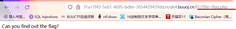 对于url中的?file=flag.php猜测为get传参进行文件包含,但是虽然包含了flag.php文件,但是并没有输出flag,猜测可能是被注释掉了。